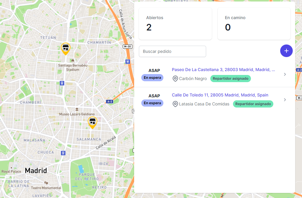 En el panel de control, puedes controlar y gestionar de modo visual todos los repartos y los repartidores.