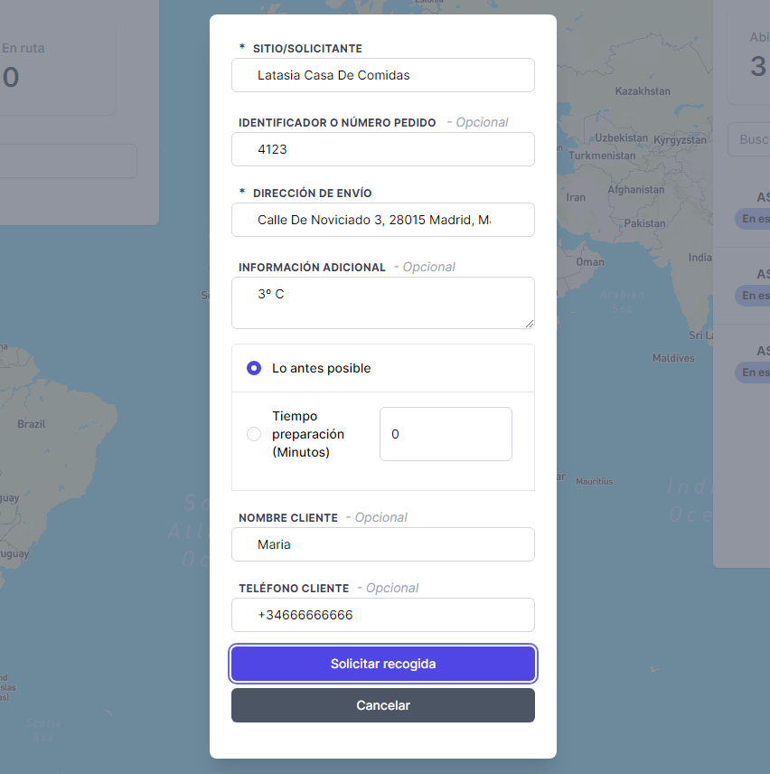 - Seleccionando un pedido, te marca el sitio y la posible ruta en el mapa,