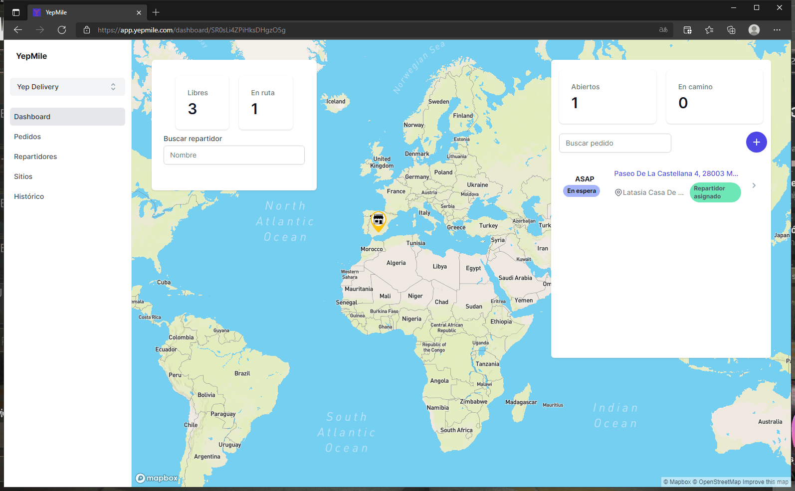 - El color del icono del repartidor, te indica si ese repartidor está en espera, o está en camino con un pedido.
