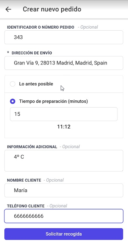 Una vez has creado un nuevo pedido puedes ver su detalle, estado y repartidor asignado, simplemente seleccionandolo: